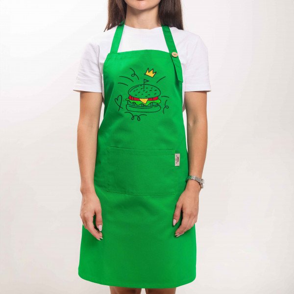 Фартук с вышивкой Бургер Саржа Зеленый