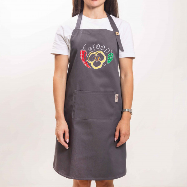 Фартук с вышивкой Food Саржа Серый