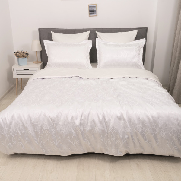 Пододеяло - выполнена двусторонней (верх – жаккардовая ткань, низ – однотонная гладь сатин люкс), застежка молния.
