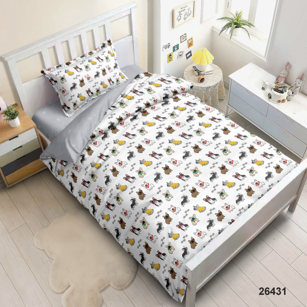• Подростковый комплект – простыня 214×150 см, пододеяльник 210×143 см, наволочка 50×70 см (1 шт.).