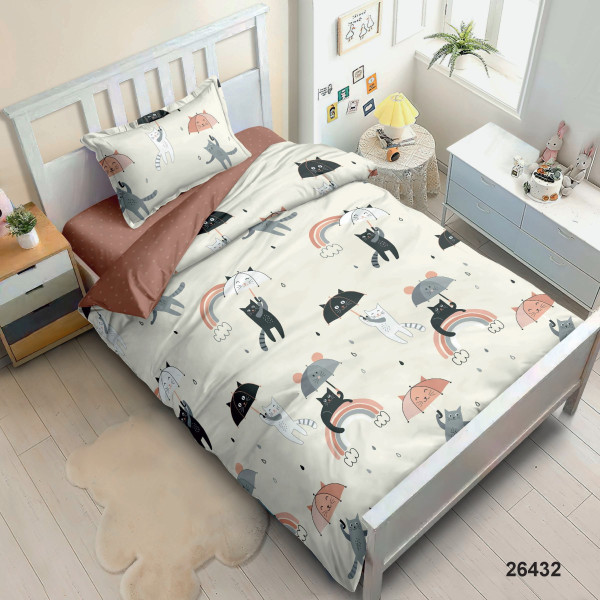 • Подростковый комплект – простыня 214×150 см, пододеяльник 210×143 см, наволочка 50×70 см (1 шт.).