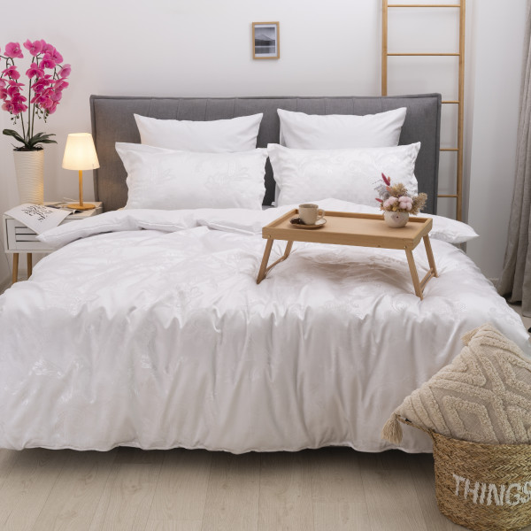 Пододеяло - выполнена двусторонней (верх – жаккардовая ткань, низ – однотонная гладь сатин люкс), застежка молния.
