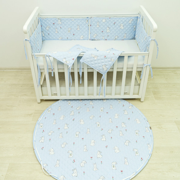 Коврик круглий детский стёганный Ø120 Ранфорс/ППУ 24281 Голубой