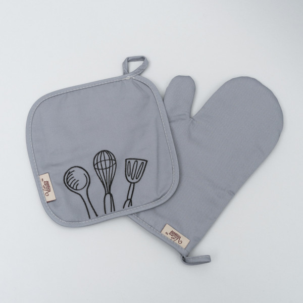 Набор кухонный с вышивкой Viluta Cook 2 ед. Саржа Светло-серый