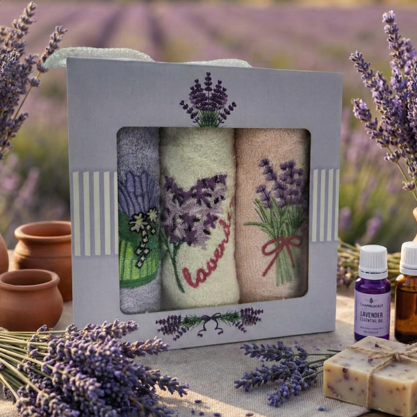 Набор махровых полотенец Лаванда изготовлено из 100% натурального хлопка. Подходит для рук и для универсального использования.