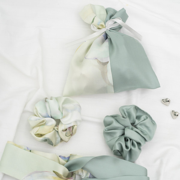 Все элементы набора изготовлены из ткани Tencel – 100% натурального волокна, созданного из целлюлозы эвкалиптовых деревьев. Эта ткань известна своей необычайной мягкостью, нежностью к коже, экологичностью и способностью дышать. Ее природные свойства делают Tencel идеальным материалом для повседневного использования, особенно в аксессуарах, контактирующих с кожей и волосами.