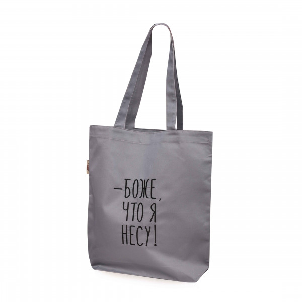 Сумка-шопер с вышивкой Боже, что я несу Саржа Серый