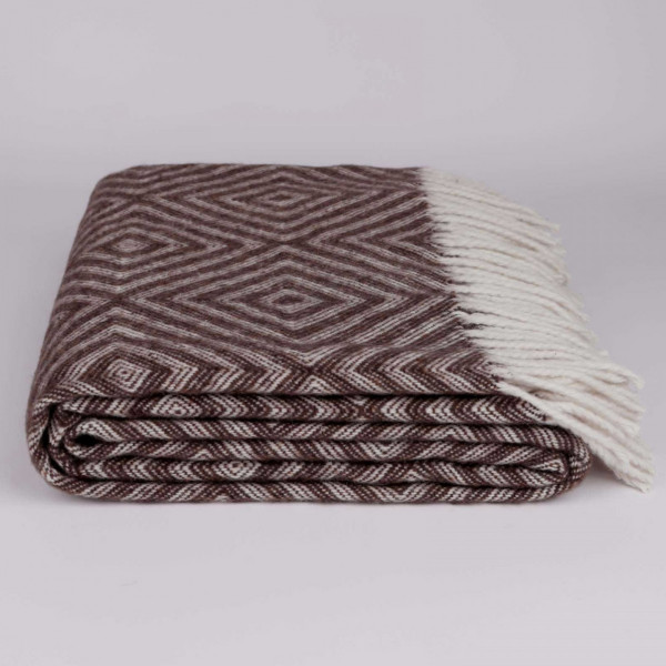 Напіввовняний плед Ромб в темно-коричневому колірному виконанні - це тепле і естетично привабливе покривало, в яке приємно загорнутися, коли на вулиці погана погода. Купити плед на ліжко - значить додати в інтер'єрі нотки затишку і теплоти. Плед-покривало може взяти з собою на пікнік або в подорож. Виріб відрізняється міцністю, невибагливістю у догляді і довговічністю. У складі текстильної продукції: 50% вовни, 50% ПАН. Це робить виріб стійким до зносу, але при цьому воно не втрачає своїх теплоізоляційних характеристик.